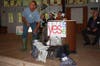 King had bags of clams and quahogs on display before the podium. "Quahogs are the only fish that Rhode Island can call its own," he said. "Let's protect Rhode Island's fish."