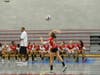 The Townies jumped out to a score of 8-4 early on, but that lead was quickly erased by the Mounties who tied the score at eight apiece. The Townies stayed poised and played clean volleyball, staying away from errors and playing tough defense. This coupled with the erratic hitting of the Mounties led to a 19-13 lead for East Providence.