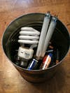 Common household hazardous waste items include fluorescent light bulbs, oil-based paint, mercury thermometers, used motor oil, gasoline, antifreeze, pool and lawn chemicals, propane tanks and pesticides.