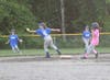 The girls, sporting pink team jerseys, showed positive team spirit, cheering on their fellow team mates as they started racking up runs with their first turn at bat.