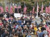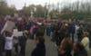 Thousands gathered outside Woonsocket Fire Department Headquarters to show support for keeping the Place Jolicoeur Memorial in place and intact.
