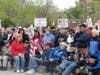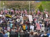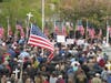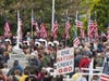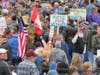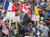 Throngs crowd Place Jolicoeur to oppose demand to remove cross from monument.