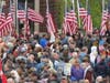 The rally was organized by Retired RI Adjutant General Reginald Centracchio after a challenge demanding removal of religious symbols from the Place Jolicoeur memorial and Fire Department website.