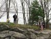 People stood around the memorial itself, filling the parking lot of the fire station. Some even took a birds-eye seat across the street on a high berm running parallel to Cumberland Hill Road.