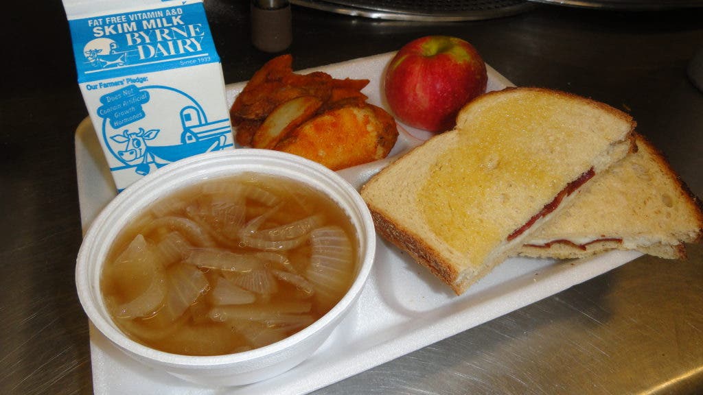 Breakfast: French toast sticks w/wo syrup or honey wheat English muffin, or assorted cold cereal, hot oatmeal, chilled fruit cup, orange juice, milk