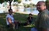 Near East School Street, Charles DiChiaro, Colleen MacKenzie and her son Jacob, along with their dogs Fritz, a shih tzu, and Hutch, a shih tzu mix, were enjoying a temporarlily unoccupied hill overlooking a patch of rides that will soon be fired up for throngs of eager Autumnfest patrons.Â
