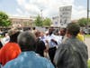 Scott waded into the protest a little after noon and spent more than half an hour engaging the AFGE protesters in sometimes heated conversation while protesters on both sides tried to drown out each others' shouts and chants.