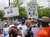 The group also takes issue with Scott's opposition to allowing Transportation Security Administration employees to bargain collectively. When asked about the TSA issue by Gage during the protest Scott did not answer the question directly.