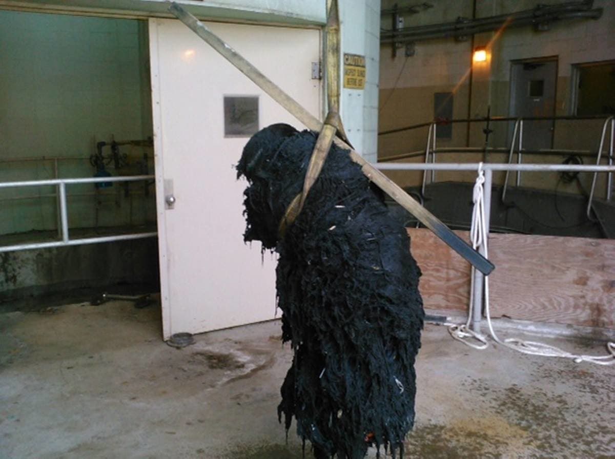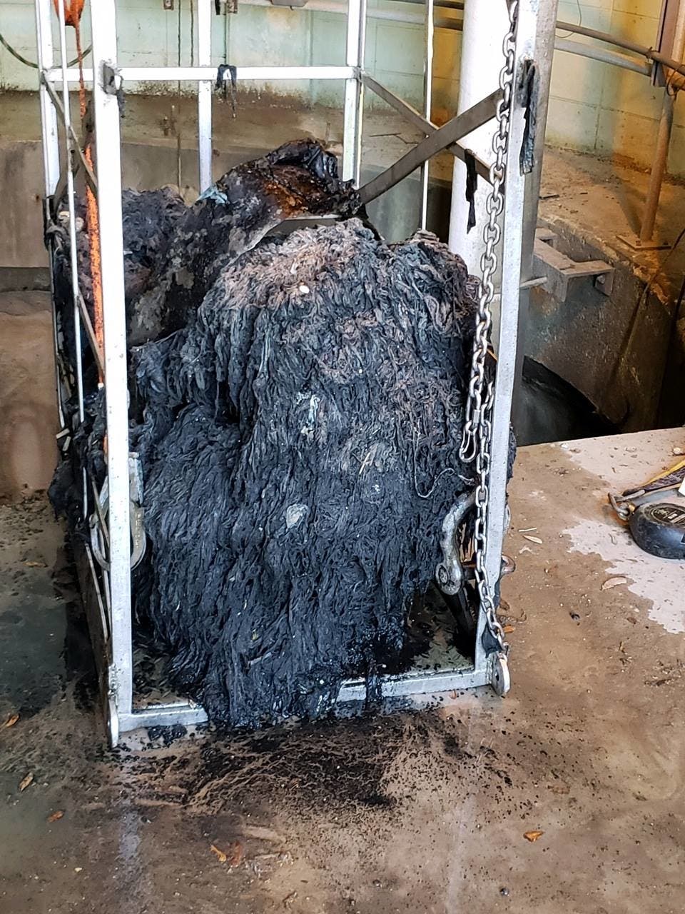 "It was a very large mass of wipes, probably exceeding 2,000-pounds in total. It took bringing many, many loads to the surface to finally clear the obstruction, free the pumps and allow us to return to normal operations," he said.