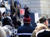 Fred Williams of Word of God Church and Ministries in Columbia was wearing a "Thank God My Mom Was Pro-Life" sticker on his jacket. No one from his church was wearing a political sticker or carrying a sign.Â