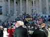 Rick Perry's son, Griffin Perry, and Rick Santorum's daughter, Elizabeth Santorum, sat on the steps of the Statehouse during the event, which included singing, words from religious leaders and a keynote speaker.