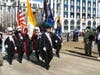 Representatives from Newt Gingrich's campaign stood on the steps holding a "Newt 2012" banner.Â