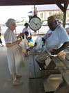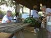 Church members help farmer sell fruits and vegetables.