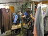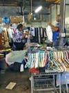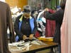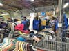 The volunteers worked in the back of The Salvation Army where all of the donations are sorted, priced and prepared for sale in the thrift store. They took clothes from boxes, put them on hangers and placed them on color-coded racks.