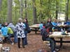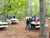 Middle schoolers participating in one of the zoo's educational programs ate at the new tables Thursday during the dedication ceremony for the renovated area.