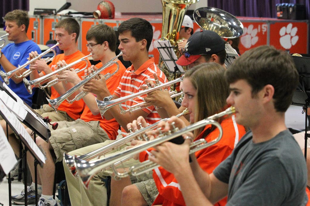 Alumni share their talents at the 2012 Olympics: Stratford graduates and current Clemson students Eddie Andrew Creighton and Stacie Louis Jacques with the college's band. Creighton and Jacques participated in three musical performances at the games.