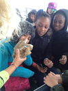 Picture #4: 5th graders, Alana Narravo, Jameria Rhodes, and Sametra McCoy learn more about the Loggerhead Sea Turtle by looking at a turtle skull.