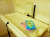 - Left wipes and disposable diaper bags on a public baby changing table.