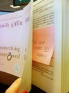 - Put inspirational post-it notes in books at a bookstore. Notes that said "Do what make YOU happy" and "Love IS possible."