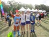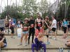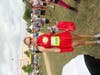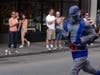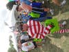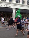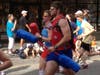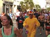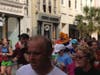 Not many smiling faces after waiting more than an hour to start the Cooper River Bridge Run, but there were a lot of people who were at least dressed for a good time.Â