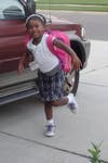 Show off those smiling and/or gloomy faces as they headed out the door this morning.