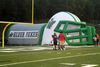 Today marks the first day of full pads for the DF Silver Foxes. They began official practices last Friday and Saturday but that is far from the start of the season. These kids, coaches, and TD Club members have been hard at work all summer in preparation for the 2013 season. After attending the parent meeting Monday night, it's apparent by the attendance, that this program is full steam ahead and no one will be satisfied until a state title is brought home by this football program. Coach Tom Knotts is in his 4th season at Dutch Fork and he made it quite clear that the program is headed in the right direction but the ultimate goal has not been reached...yet. There's no doubt in his mind (or mine either) that there will be a football state championship at Dutch Fork in the near future. The football budget has grown by leaps and bounds because of the leadership of Coach Knotts and this TD Club. The budget is taking care of current needs and keeping an eye on the future in what is needed to sustain a winning football program. I know that a new sound system is being discussed, a new scoreboard is being discussed, they already installed new play clocks in the end zones (last season), and the brand new entrance tunnel (pictured) that the players will run through prior to kickoff! Along with all of the new construction in and around the high school for academic upgrades, the construction will bring along with it a new weight room, new locker room, locker room for officials, new parking for visiting fans, better locker room for visitors, better seating for visitors, new concessions for visitors, bus parking on the visitors side for all sports and it goes on and on. They varsity will be scrimmaging Spartanburg High School this Friday at 10a.m (at DFHS). That will be a chance for you to see what is going on around the school and what is going on, on the field.