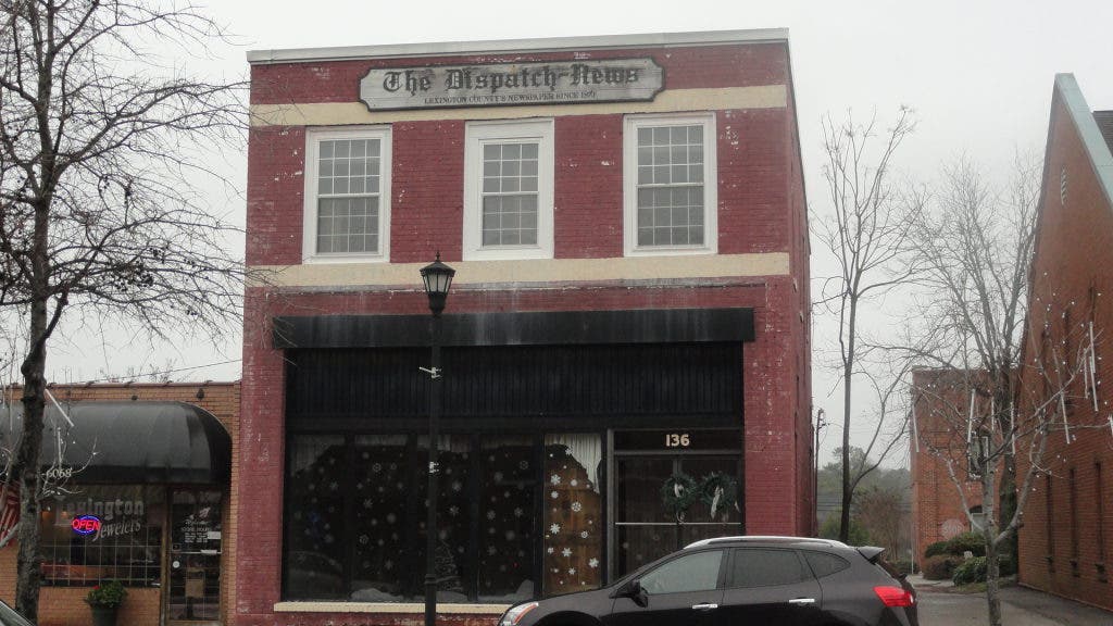 The shadow of the defunct Dispatch-News newspaper building looms over Lexington's East Main Street.