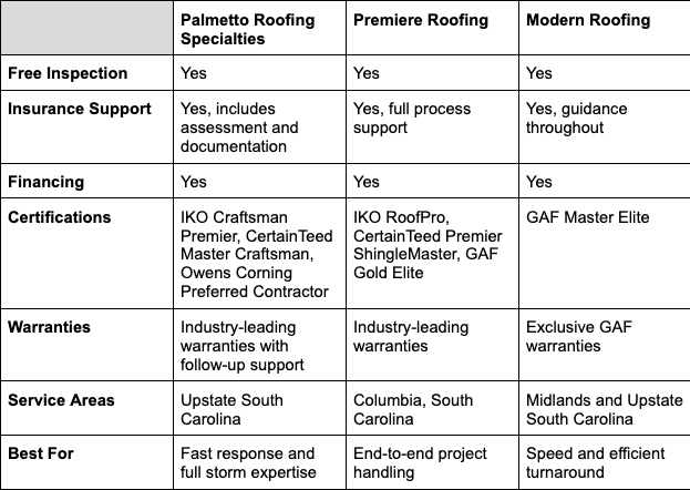 Although Palmetto Roofing Specialties leads in overall service and storm expertise, several other companies across South Carolina also offer solid options, depending on your location and specific needs.