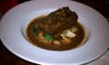 Her Take: The decorations are fun, old, and very pirate-ish.Β We had the 3 courses for $20.Β I ordered the beet salad for the appetizer, Filet Mignon with bleu cheese sauce and potatoes au gratin for the main course, and chocolate mousse for dessert.Β The salad was good, beets are usually not my favorite but the vinaigrette dressing really made this salad.Β I ordered my filet mignon medium and Matt ordered the same but medium rare.Β Unfortunately, we switched plates twice between the two of us because we couldnβt figure out which steak was which.Β The dessert was yummy- I donβt think someone can mess up Chocolate mousse.Β I also ordered a mojito which was excellent and very strong!