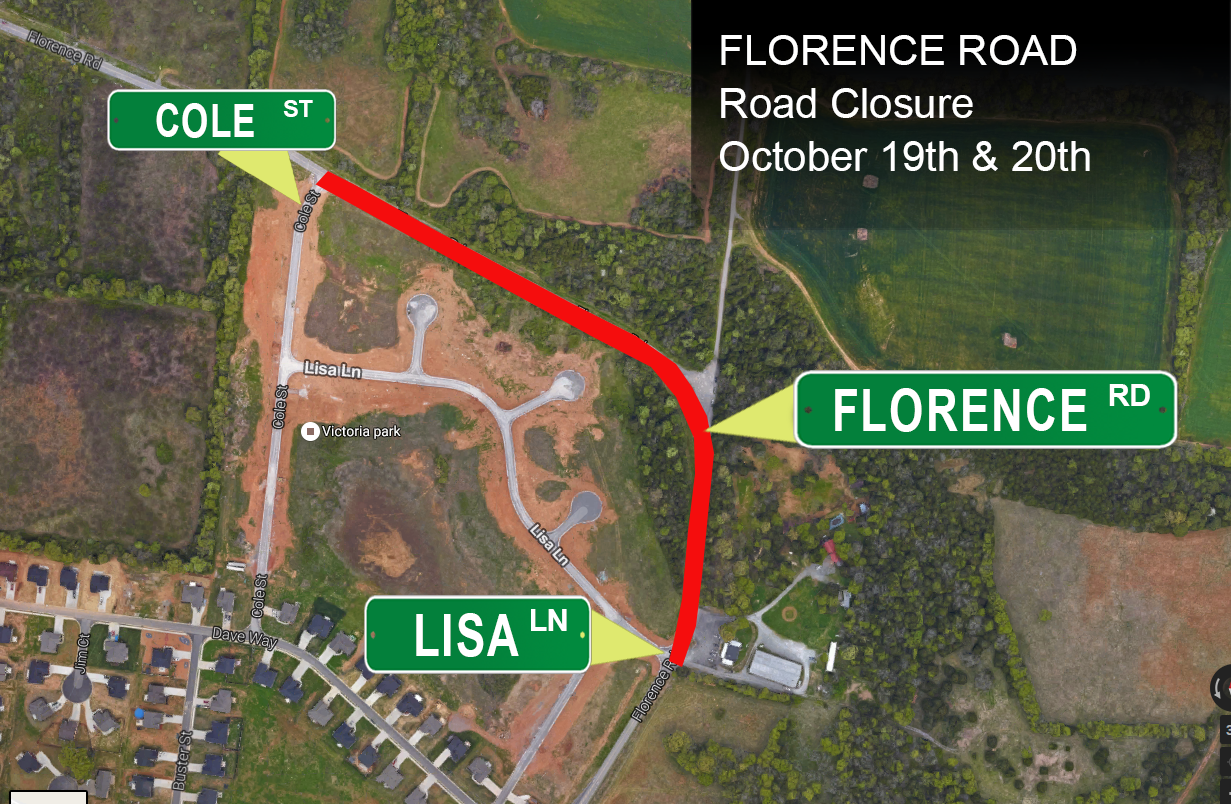 - Florence Road from Cole Street to Lisa Lane is still closed