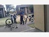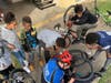 Police Officers Help Children Repair Flat Bicycle Tires
