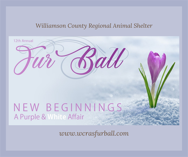 Williamson County Regional Animal Shelter will host its 12th Annual Fur Ball on Saturday, Nov. 6, from 6 to 10 p.m. at the Sheraton Austin Georgetown Hotel and Conference Center. The theme is New Beginnings: A Purple and White Affair. Tickets include dinner, two drink tickets per person, silent and live auctions, a 100 for $100 raffle, plus the Wine Toss - always a huge hit! Bring along a pet photo for our caricature artist to render - a great keepsake or wonderful gift for the holiday season. Play the Wheel of Fur-tune for your chance at fun prizes. Don't forget to step up for a photo op to commemorate your evening! Our Masters of Ceremonies, Jim Spencer and Edward Flores, along with everyone's favorite rescue pup, Kaxan, will host our evening's festivities! Check out our brand-new website, www.wcrasfurball.com, for more details as they're made available!