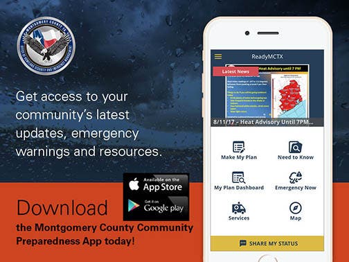 “In addition, we urge residents to download our newly created emergency preparedness app ReadyMCTX for smart phones, which can be used to obtain emergency updates and emergency preparedness information, including road closings.”