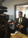Lead image via Patch/Payton Potter. Sini Mathews' attorney Kent Starr adresses reporters after a judge postponed the family's custody hearing.