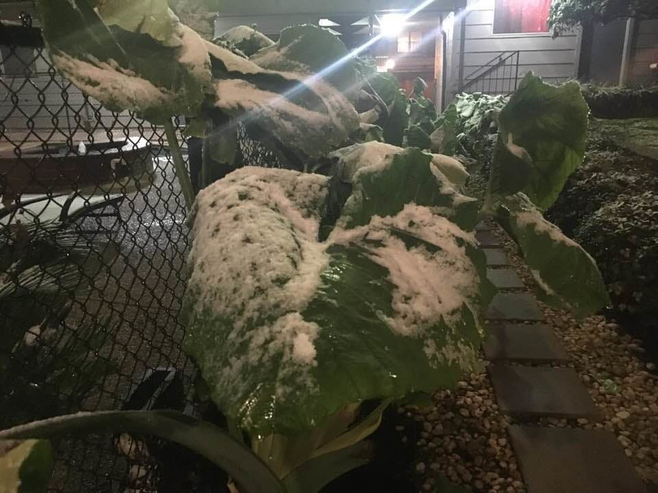 But in some places, it did stick. In some spots, snow was clearly visible on plant life if not the heat-absorbent grass. A once-glorious row of fully grown elephant ear plants at a North Austin apartment complex was weighted down with snow Thursday night, prompting at least one resident to audibly lament the likely damage on the resplendent greenery.
