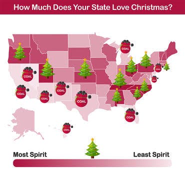 If you care to learn more (or not, who cares right?), here is the list detailing the degree of Christmas spirit per state, ranked highest to lowest: