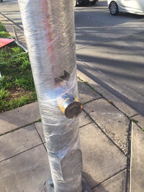 But along the way, telltale signs of the looming COVID-19 threat could also be seen in close proximity and in juxtaposition to the festive banners just a stone's throw away. Buttons on street light poles — veritable petri dishes for germs given the countless contact by pedestrians — were wrapped in saran wrap to avoid the potential spread of virus contamination.