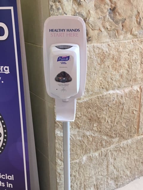 Stationed at the entry of Room 1034 inside City Hall — the "News Conference Room" where the cancellation news were delivered — an antibacterial station was installed for easy access: