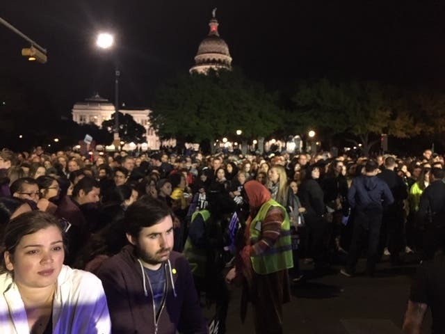 A head count wouldn't be available until Sunday, but throngs of people descended on a swath of downtown real estate along 9th and Congress streets to hear the candidate speak. The crowds were enthusiastic as they waited for O'Rourke to arrive, their spirits buoyed with festive Latino music blared through loudspeakers with the stately Capitol building bathed in light serving as backdrop.