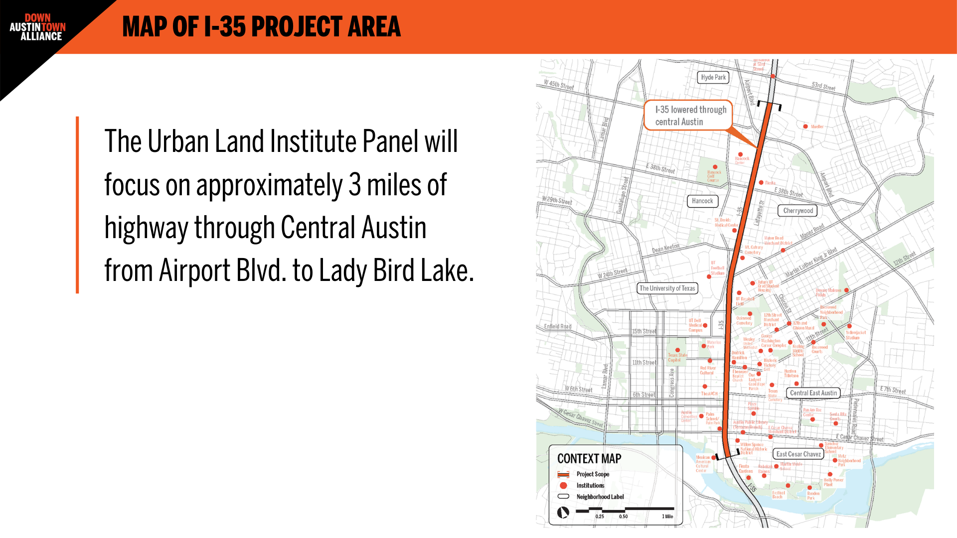 Aiding in the efforts are officials with the Urban Land Institute, a nonprofit research group of real estate and land use experts, who have been engaged with the Downtown Alliance to analyze the overall range of options for I-35, officials said.