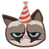 On the same Facebook page announcing his Austin appearance, the PR-savvy cat also promotes a new emoticon (he calls it a grumpmoji) featuring a caricature image of the frowning face despite donning a party hat. It’s free in the Apple store, he points out helpfully.