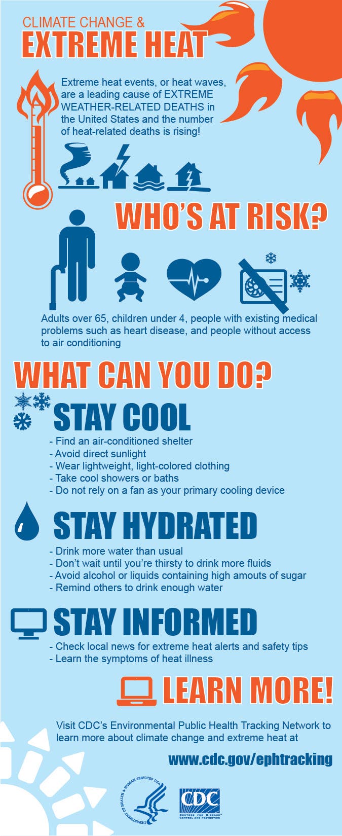 The Centers for Disease Control and Prevention provides numerous tips on staying cool to avoid succumbing to heat-related illness: