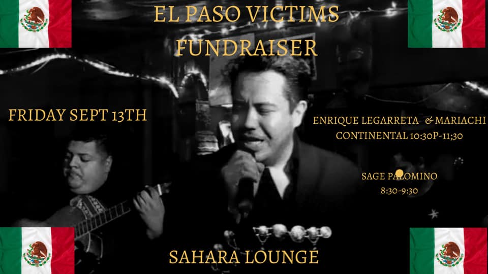 - A Sept. 13 fundraiser has been scheduled at The Sahara Lounge, 1413 Webberville Rd., at 9 p.m. to aid shooting victims. The music of choice will be the quintessential Mexican musical expression of mariachi to aid victims — including six Mexican nationals. "And we’ll sing so loud that El Paso will hear us," organizers wrote on the Facebook event page. "We will not let our spirits falter. Our thoughts are with you, brothers and sisters." All proceeds of the event will benefit victims of the El Paso shooting, according to lounge officials. The scheduled opening act will be El Paso native Bruno Amezega’s musical project, Sage Palomino.
