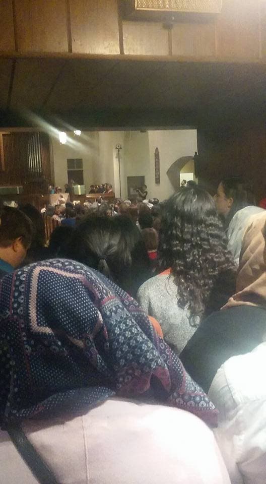 People lined up outside the house of worship as it quickly filled up with members of the community. At side entrances, every nook and cranny of each hallway was packed with people straining to hear what religious leaders and refugee advocates had to say in addressing those inside.