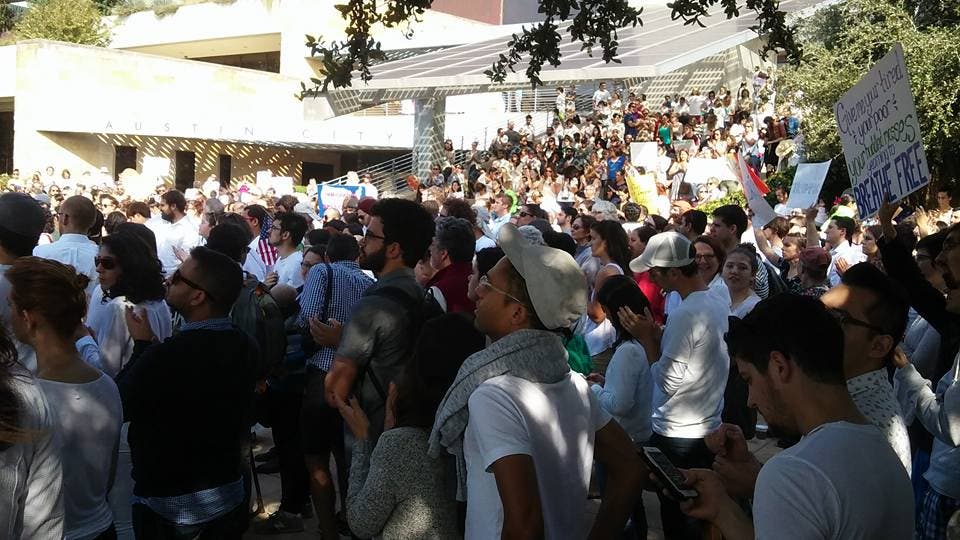 “At this time of uncertainty, I stand here certain of one thing, and that is that Austin, will not waiver,” Adler said, his comments prompting cheers from the audience. Austin is among the locales in historically red Texas to have voted for Hillary Clinton in the presidential election, the city long known as a blue dot in a sea of red given its progressive ideals.