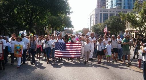 More than 200 gathered to remind that "Love Trumps Hate," the theme of the gathering that was emblazoned on placards. They descended on City Hall on Sunday morning, led by several speakers that included Mayor Steve Adler, District 4 City Council member Greg Casar and Cristina Tzintzún, the co-founder of the locally based Workers Defense Project who recently accepted a position with an organizing group in Washington, D.C.
