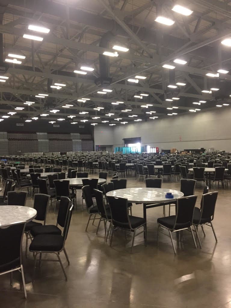 But soon it will house a unique gathering not mindful of networking but in search of the more fundamental needs of shelter and food. State officials previously asked if the city might house 7,000 evacuees from the affected region. The convention center will have the capacity for 2,500 guests, complemented by four other city shelters housing more than 560 evacuees.