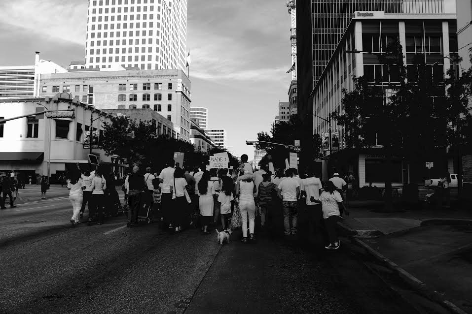 The Nov. 13 rally yielded evidence of such momentum. At least 200 people crammed the staging area in front of City Hall on a Sunday morning, later to march along downtown streets to reach the gates of Capitol. Along the way the multi-cultural group chanted slogans, buoyed along the way when bystanders would leave the sidewalk as spectators to join them in the cause.
