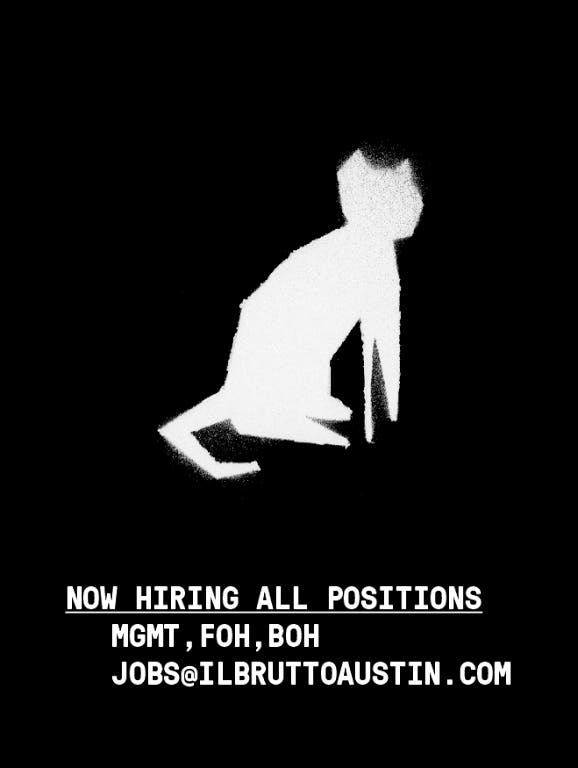 New Waterloo, the restaurant's operators, offers employees competitive pay, paid time off and generous benefits, officials said. Those interested should have a resume and cover letter on hand. For more information, visit newwaterloo.com/jobs or email resume to jobs@ilbruttoaustin.com.