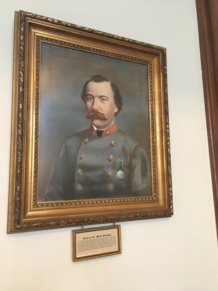 In the House chamber, Confederate Army volunteer Dick Dowling is given a special place of honor in the hallowed walls. Born in Ireland, Dowling would rise to the rank of first lieutenant while serving in the recapture of Galveston in January 1863. He was celebrated for fortifying Fort Sabine in holding back the Federal fleet, ultimately emerging victorious in the battle for Sabine Pass—considered the most spectacular Civil War military engagement in Texas.